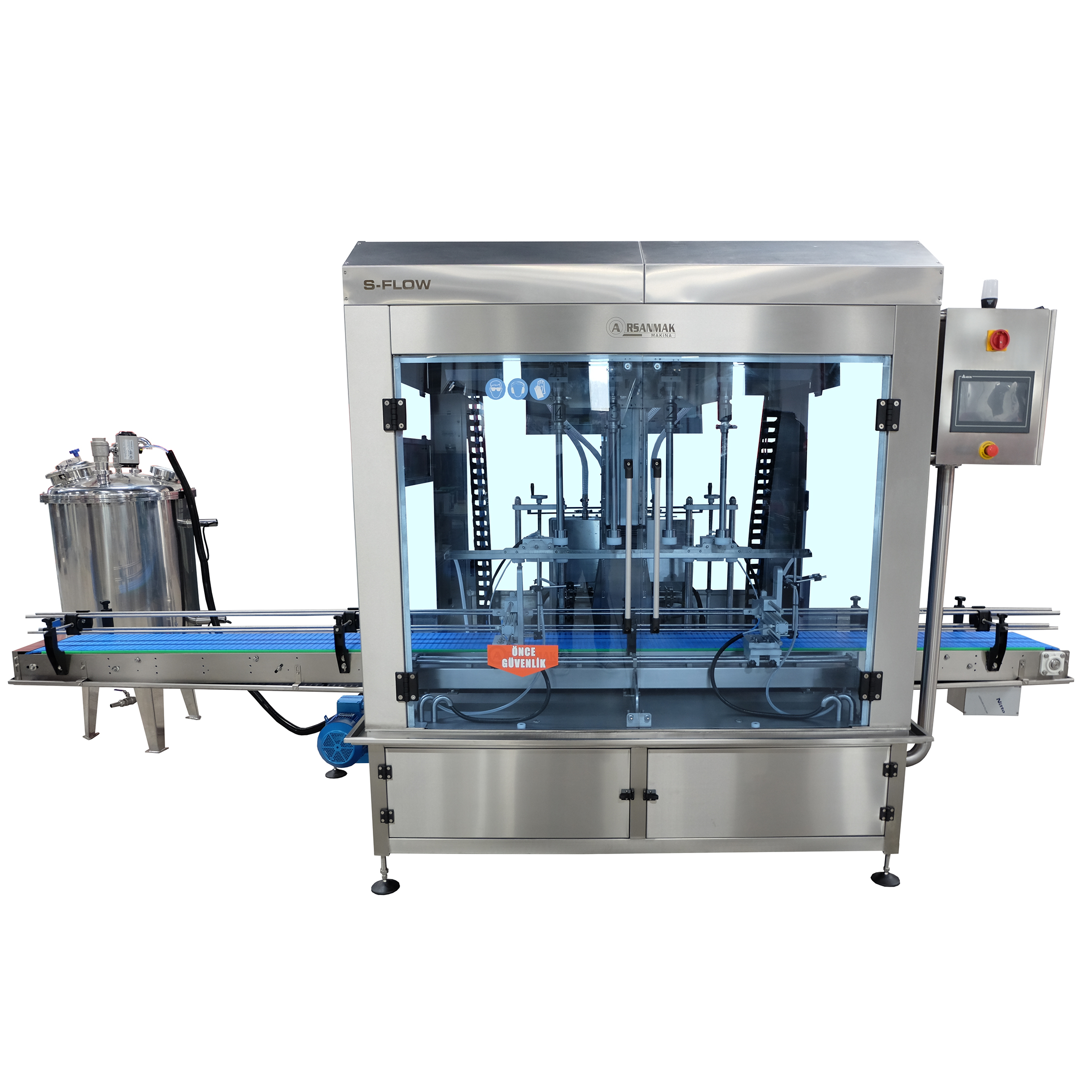 Farklı ürünler için 10 farklı dolum parametresi hafızaya kaydedilebilir. Değişik ebatlı kutular için dolum kafasının yüksekliği ayarlanabilir.